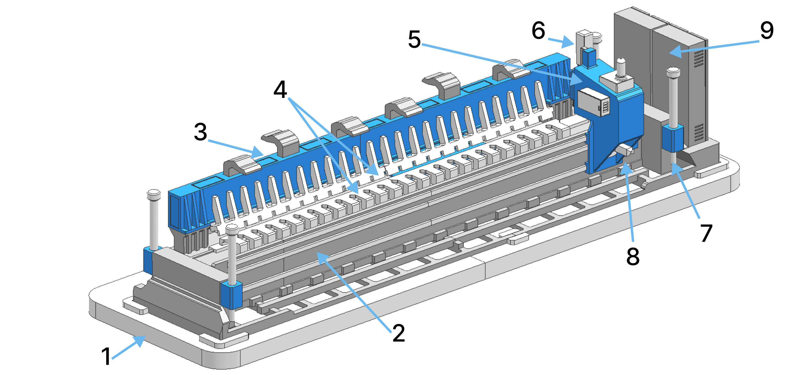 По оси X и Z используются 2 линейные направляющие роликового типа для тяжелых условий эксплуатации, обеспечения высокой жесткости, поддержания стабильной скорости подач.